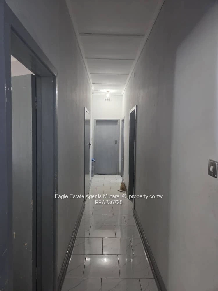 Starter home located in the best suburb of Mutare with lots of room for extension, comprises entrance hall, lounge, dining, kitchen, 3 beds, bathroom of tub and separate toilet. Single-staff quarters and a single carport.